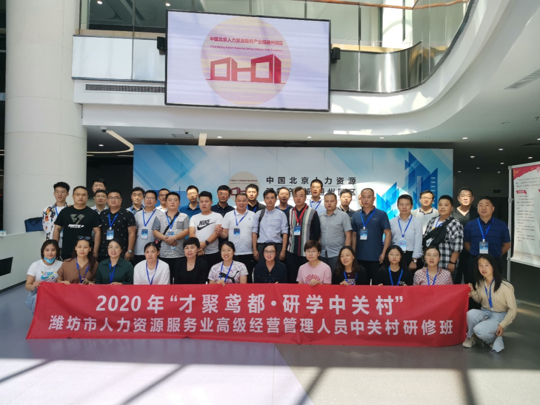 9月13日-19日,2020年“才聚鸢都·研学中关村”潍坊市人力资源服务业高级经营管理人员中关村研修班在京成功举办。研修班由潍坊市人力资源和社会保障局主办,潍坊市公共就业和人才服务中心承办,潍坊市人力资源和社会保障局党组成员、潍坊市公共就业和人才服务中心魏明主任出席开班典礼并致辞。