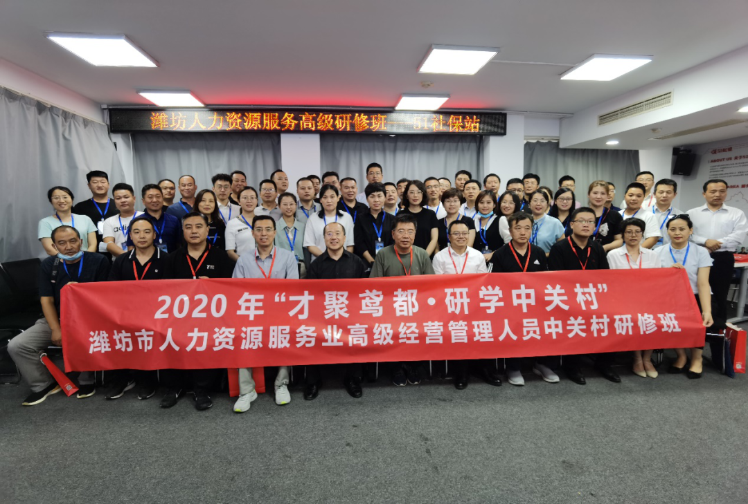为进一步提升潍坊市人力资源服务业发展水平,促进从传统职能人力资源管理到战略人力资源管理转变,更好的服务助力全市经济社会建设,潍坊市人社局举办“才聚鸢都·研学中关村”潍坊市人力资源服务业高级经营管理人员中关村研修班,旨在帮助人力资源服务业企业开阔眼见,学习中关村企业先进的管理理念和服务方式,更好为潍坊市企业提供人力资源服务。
